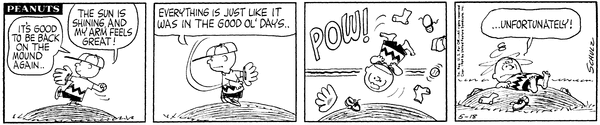 Mr. Manager part 253; Chuckson asks Schroed why he never asks him how his soupbone is and has to tell him that it is a pitcher's arm, and then he does it which feels annoying.629