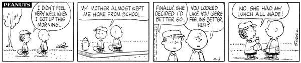 Lins' son doesn't feel good in the morning and his mother almost keeps him home from school, but she had his lunch made.