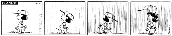 Mr. Manager part 253; Luc gets stuck in the rain during practice and so she uses a stick and her hat as an umbrella until it stops.