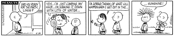 Chuck and Lins prepare for a representatives party and Lins combs down his hair but the sunshine makes it stand up like usual.