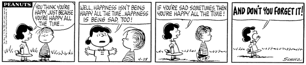 Luucy scolds her fiancé that he isn't happy because he is always happy, to be truly happy you sometimes have to be sad.