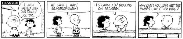 Eraserophagia part 2; Chuc tells Luucy that he got Eraserophagia from nibbling on erasers and she asks why he can't just get mumps like normal people.