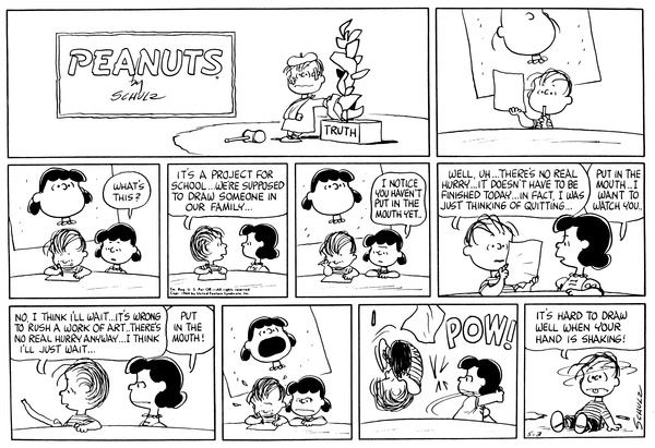 Lins' son has to draw a picture of a family member for school and chooses Luucy's daughter, but when she sees her mouth yelling she hits him.