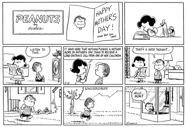 Luucy reads to Lins' son that nothing pleases a mother on mother's day as a long-distance call from one of her children and so he runs over to a phone booth and calls his mother.