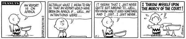 Chuck's son has a report on Africa but forgot to do it over vacation and throws himself upon the mercy of the court (his words).