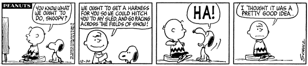 Chuck tells Snoop that they should have Snoop pull him on a sled and race across the fields of snow but he just laughs at him.