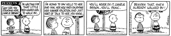 Luucy's daughter demands that no one speak to her and her stepbrother ignores her, until she scares him into silence.CB 3714 Lucy 2086 Snoopy 1889 Linus 1664 Schroeder 686 Frieda 110 LRHG 31