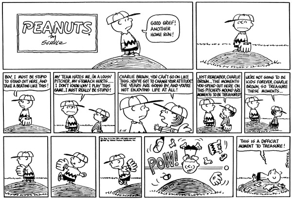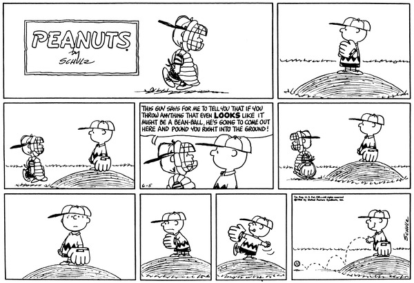 Mr. Manager part 338; Schroed tells Chuckson (Lin is gone for the day) that the hitter said that if his pitch looks like a bean ball he'll stomp him, he then decides to do the opposite of a bean ball, practically rolling it.686