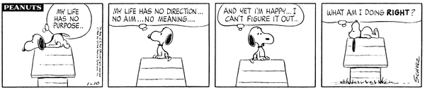 Snoop reflects on his life and thinks that his life is meaningless but he's happy so he wonders what he is doing right.